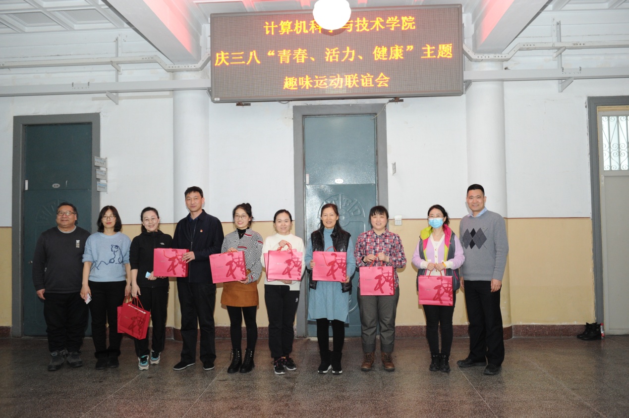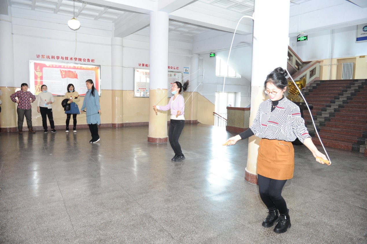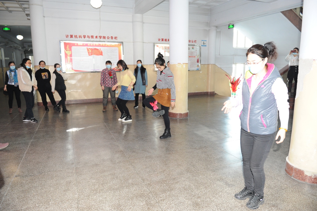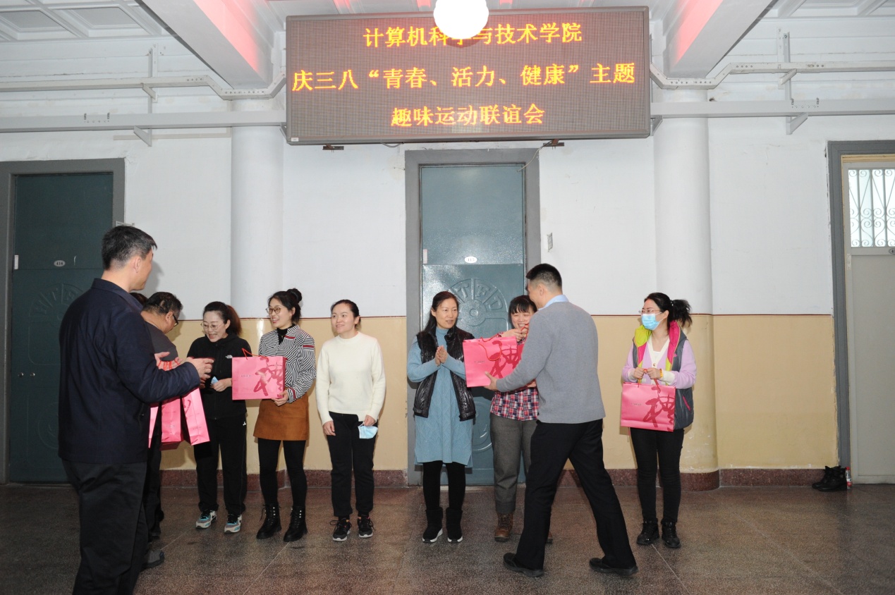 “青春、活力、健康”趣味运动联谊会(线下)活动以现场友谊赛的形式开展,学院共有24名女教工参加,活动内容包括一分钟跳绳计数赛、二分钟乒乓球颠球赛、三分钟踢毽子展示赛,整场活动笑声不断,加油声、鼓掌声响动,活动最终3人获一等奖,6人获二等奖,9人获三等奖,活动结束后学院党政领导、工会主席现场为参加活动女教工颁发获奖奖品。