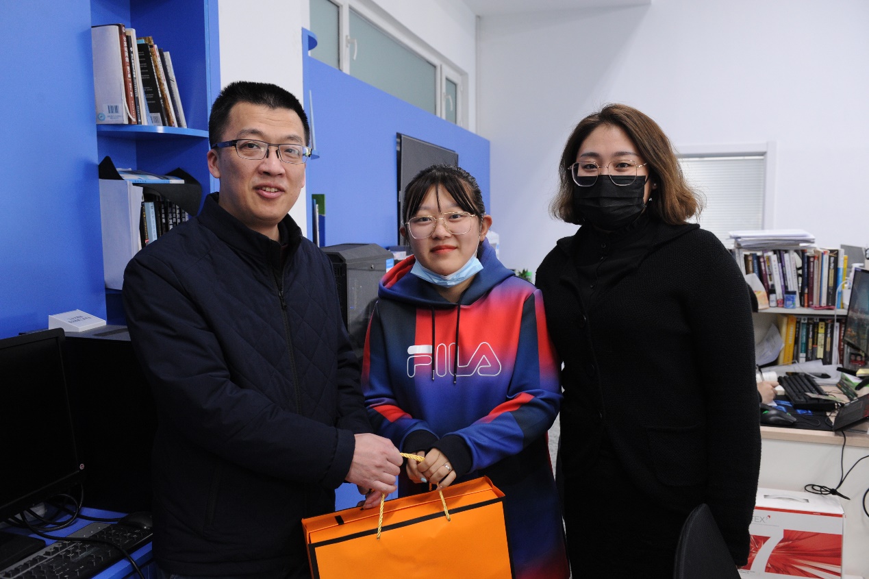 刘冬一行为每位辛勤工作的女教工送上了一份精美节日礼物,详细了解大家工作和生活的情况,听取她们的心声和意见,向她们致以节日的祝福和感谢,鼓励她们在今后的工作和生活中继续发挥自己的才能和作用。刘书记表示,近两年来,我们面临着疫情的严峻挑战,学院女教职工们以坚韧不拔的意志和无私奉献的精神,为学院疫情防控和教育教学工作的顺利开展做出了不懈的努力和贡献。在这个特殊的节日里,对所有为学院发展付出辛劳和汗水的女性教职工致以最崇高的敬意。在教育教学一线、科研创新中、行政管理中,女教职工以其勤奋、才华和专业能力,展现出了非凡的魅力和实力。希望广大女教职工不忘初心,继续保持良好的工作状态和精神面貌,在今后的工作中,不断提高自身素质,立足岗位工作实际,积极践行为党育人、为国育才的初心使命,落实好立德树人根本任务,主动奋进发展新视野,不断塑造发展新动能,以争先创优、追梦奔跑的昂扬姿态,在学院未来发展事业新征程上贡献巾帼力量、展示巾帼风采。