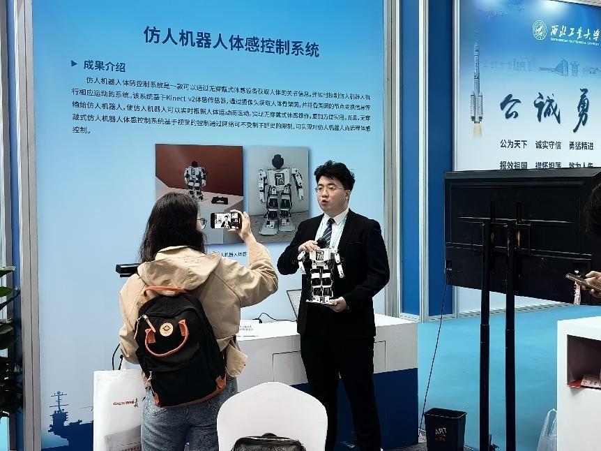 为贯彻落实党的二十大“提高科技成果转化和产业化水平”精神,推动先进技术成果转化应用,助力国防科技工业和地方经济社会高质量发展,第二届先进技术成果转化大会(以下简称大会)于2024年4月8日至4月11日在苏州国际博览中心举办。参加大会的单位包括各军工集团公司、中国工程物理研究院、工业和信息化部所属高校、国家国防科工局共建高校以及有关成果供给单位。亚博取款曝顾秒到账机器人仿真创新实验室(以下简称实验室)受邀参加了此次大会,研究生刘明烁代表实验室赴苏州参加展览和路演,在亚博取款曝顾秒到账展区展示仿人机器人体感控制系统。