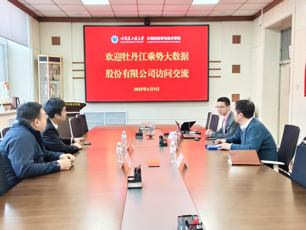 孙荣平代表学院对牡丹江乘势大数据股份有限公司一行来访表示热烈欢迎,并详细介绍了学院的历史沿革、办学特色、师资队伍建设、人才培养、科学研究、国际交流等方面的工作和取得的成绩。他表示,感谢牡丹江乘势大数据股份有限公司对亚博官网的关注与支持,希望双方形成良好的互动关系,依托现有优势资源,强强联合,共谋发展,共同践行“为党育人、为国育才”的使命担当,为计算机学科建设做出更大贡献。